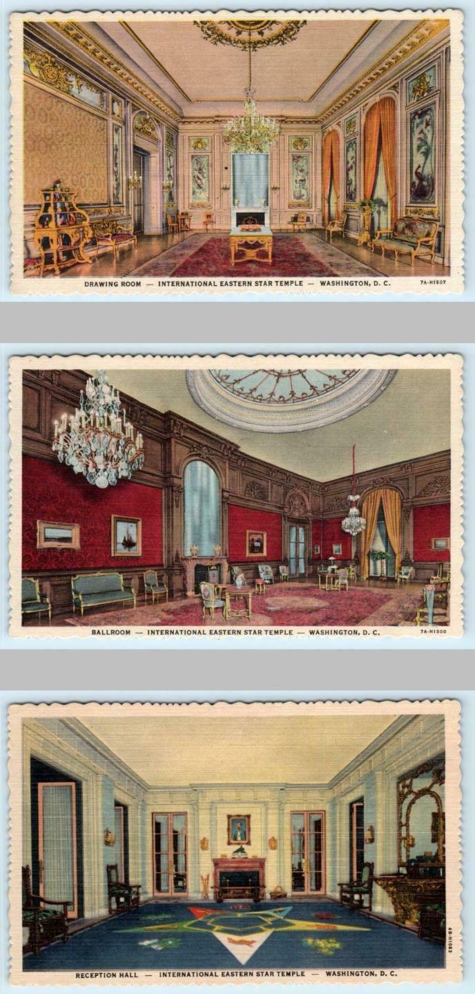 3 Postcards WASHINGTON D.C. ~ International EASTERN STAR TEMPLE c1940s Linens