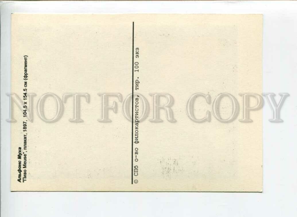 Lady Beer Meuse by Alphonse Mucha Modern Description: >>> Age: Modern postcard (Limit Edition) >>> Approx.Size: 6X4 inches (15X10.5 cm) >>> Publisher: Russia >>> Series# - >>> Number# - >>> Caption: ... Read More