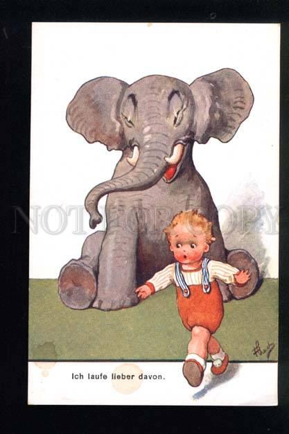 FUNNY ELEPHANT & BOY. VINTAGE B.K.W.I. 66 Description: >>> Age: Vintage original old postcard >>> Approx.Size: 5.5X3.5 inches (14X9 cm) >>> Publisher: BKWI >>> Series# >>> NUMBER# 66-2 >>> Caption: ... Read More