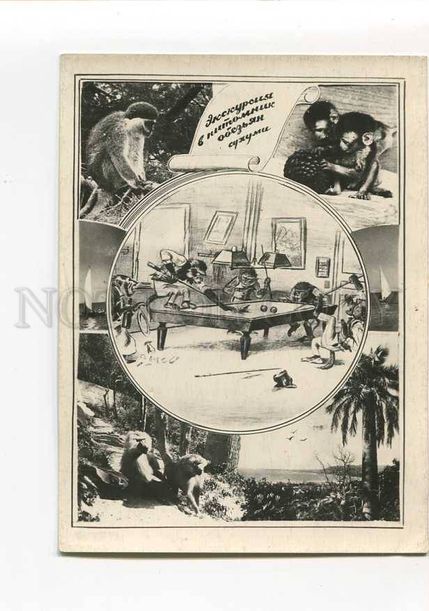 Monkeys Play Billiards Vintage Collage Pc Description: >>> Age: Old original postcard >>> Approx.Size: 4.6X3.5 inches (12X9 cm) >>> Publisher: Russian >>> Series# >>> Number# >>> Caption: >>> ... Read More