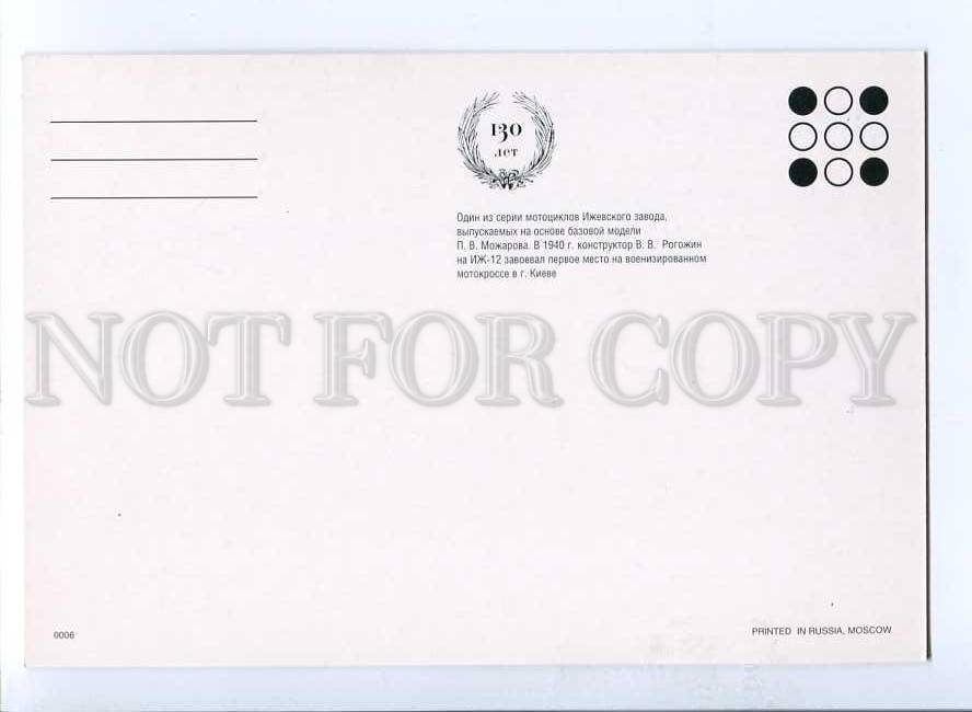 RUSSIAN MOTORCYCLE IJ-12 POSTCARD