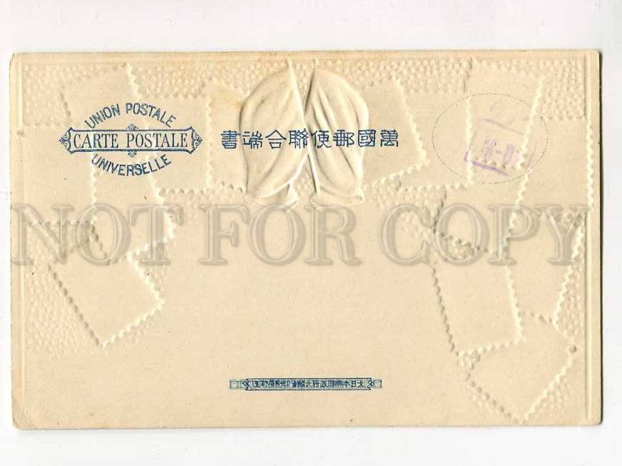 3079751 JAPAN Stamps & flag Vintage embossed PC