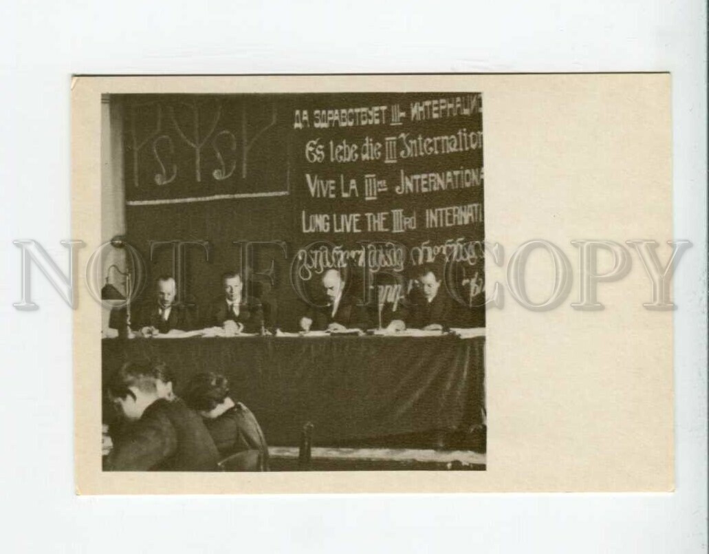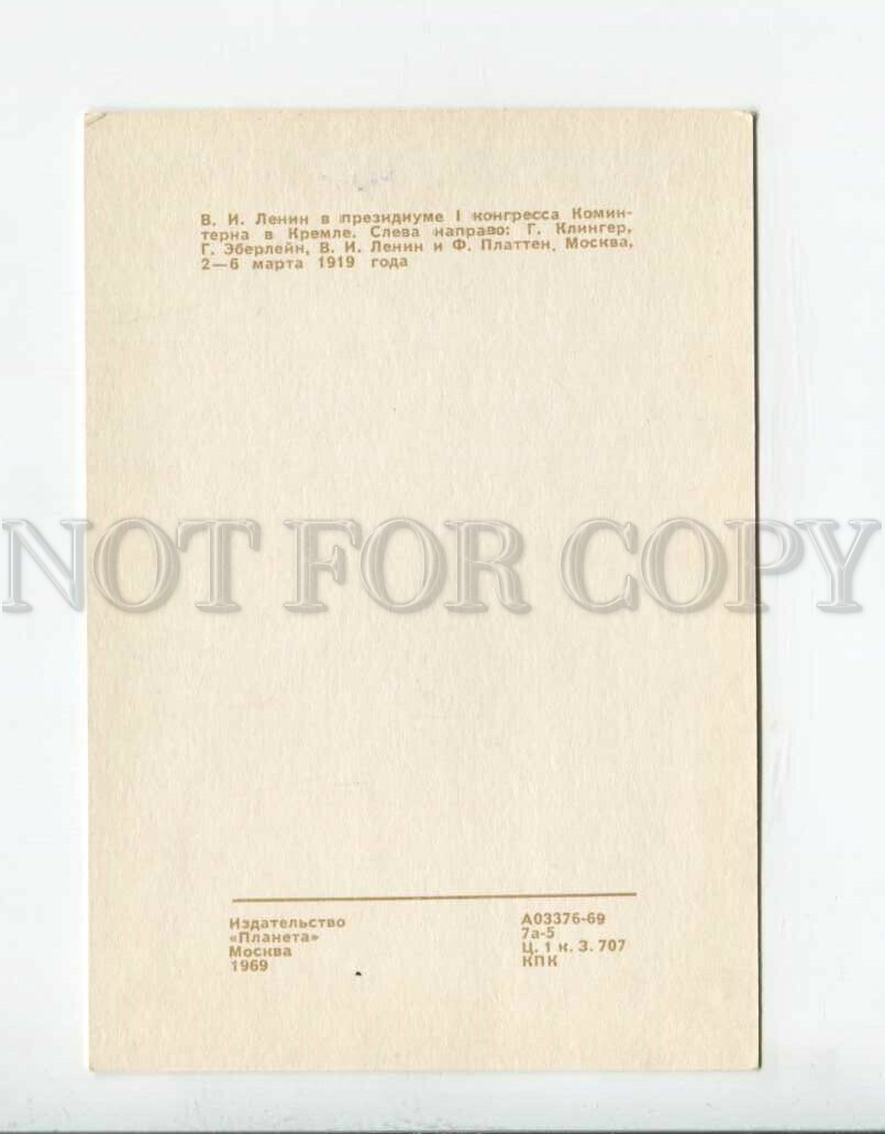 >>> CAPTION: V.I. Lenin in presidium of I congress of Komitern in Kremlin from left to right: G. Klinger, G. Eberleyn, V.I. Lenin & F. Platten 2-6th of march 1919