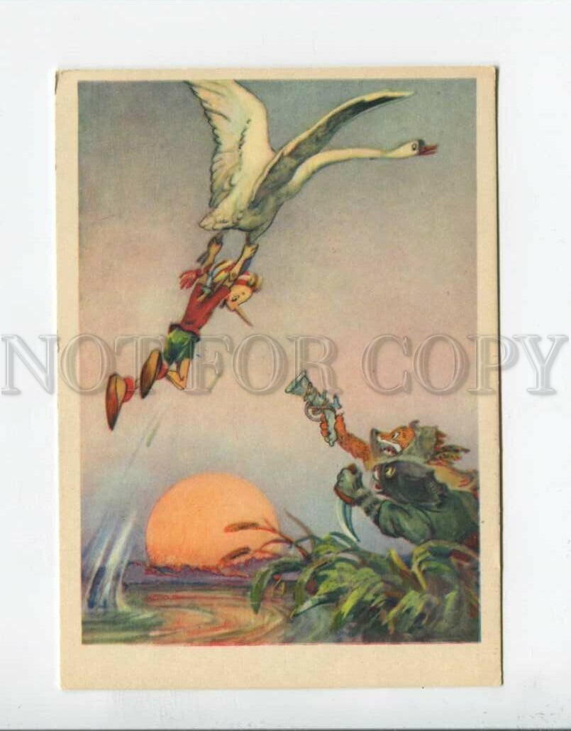 3094252 Flying PINOCCHIO & Dressed FOX & CAT Old Russian PC