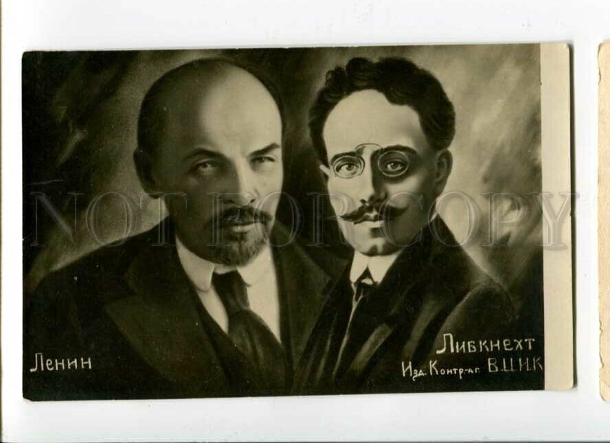 Lenin & Libkneht Vintage Rare Russian Pc Description: >>> Age: Vintage original old postcard >>> Approx.Size: 5.5X3.5 inches (14X9 cm) >>> Publisher: Kontr.-ag. VCIK >>> Series# >>> Number# >>> Ca ... Read More