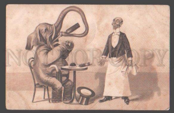 3098374 Dressed ELEPHANT Top Hat & Waiter RESTAURANT Vintage PC