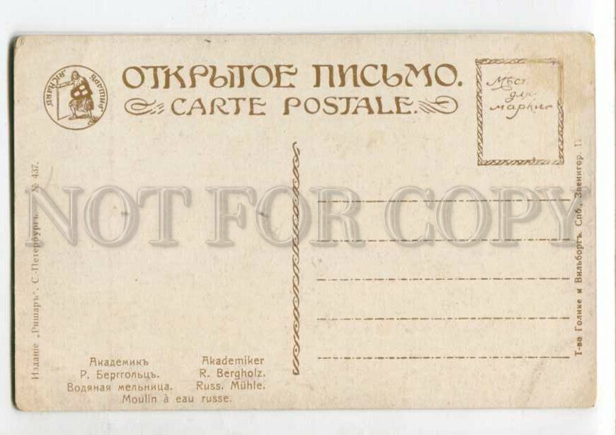 Water Mill by Berggolts Vintage Russian Rishar Pc Description: >>> Age: Vintage Original old postcard >>> Approx.Size: 5.5X3.5 inches (14X9 cm) >>> Publisher: Rishar (Richard), St.Petersburg - Russia >>> ... Read More