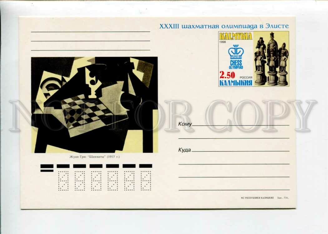 Chess by Huan Gris Postcard Description: >>> Age:Original old postcard Postal Card 1998 year - One-sided postcard with the original stamp - w/ ADVERTISING of XXXIII Chess Olympiad in Elista >>> Approx.Size: ... Read More