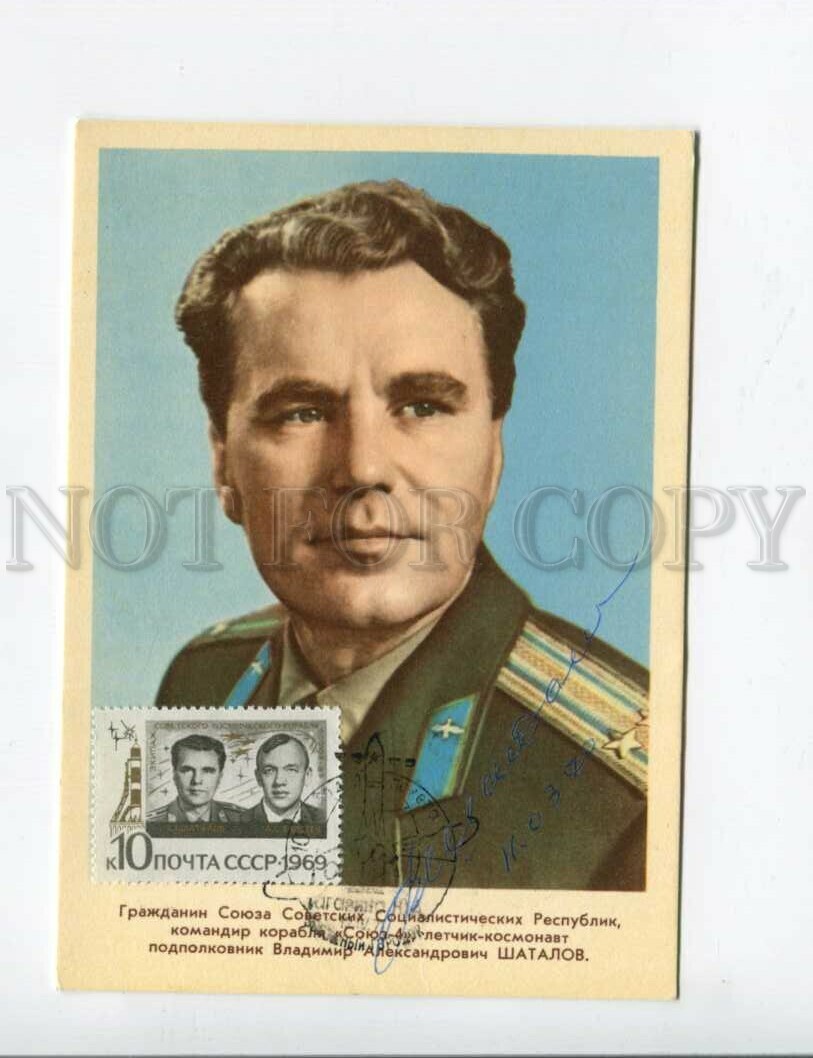 Vladimir Shatalov Soviet Cosmonaut Space Autograph Description: >>> Age: Original old postcard with AUTOGRAPH >>> Approx.Size: 6X4.1 inches (15X10.5 cm) >>> Publisher: 1969 year - Photo Mokletsova - Pravd ... Read More