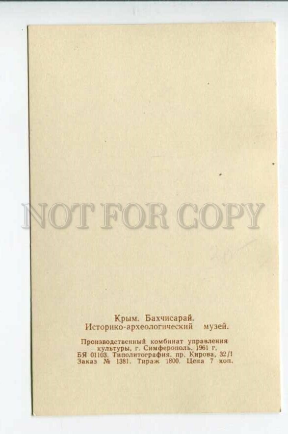 Ukraine Crimea Bakhchisaray Museum Old Postcard Description: >>> Age: Original old postcard 1961 year >>> Approx.Size: 5.5X3.5 inches (14X9 cm) >>> Publisher: total print 1800 - Ukraine >>> Series# - >> ... Read More