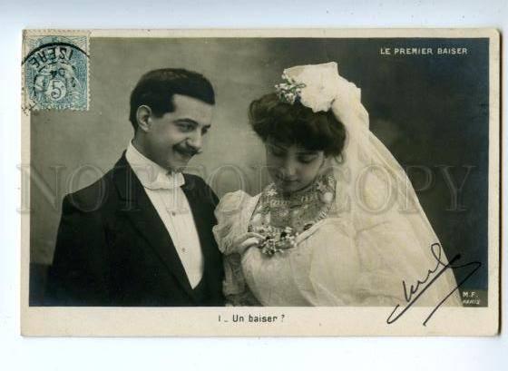 Wedding First Kiss Vintage Photo Pc Description: >>> Age: Vintage Original old postcard >>> Approx.Size: 5.5X3.5 inches (14X9 cm) >>> Publisher: M.F. Paris >>> Series# - >>> NUMBER# 1 >>> Caption: ... Read More