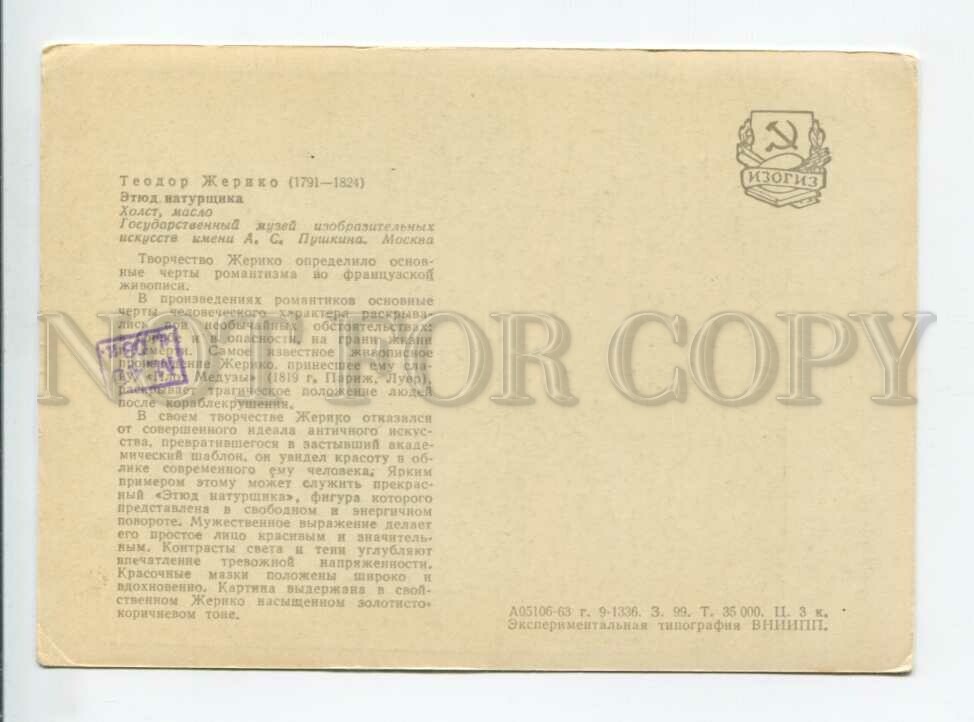 Nude man model by theodore gericault old russian pc Description: >>> Age: Original old postcard 1963 year >>> Approx.Size: 6X4 inches (15X10 cm) >>> Publisher: IZOGIZ - USSR Russia - total print 35000 >>> ... Read More