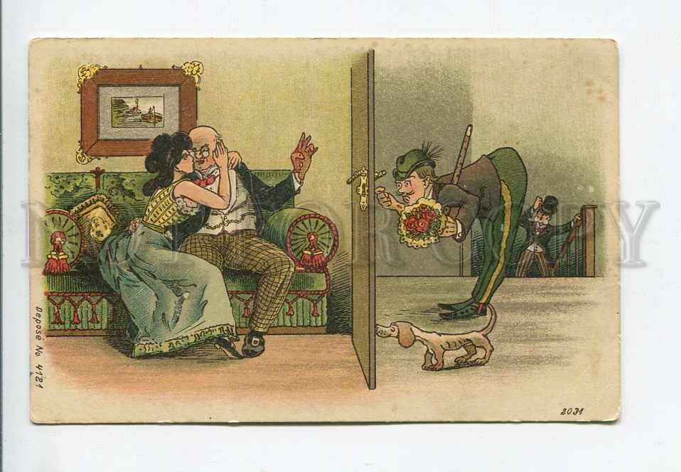 3176997 COMIC Lady & Lover DACHSHUND Vintage LITHO PC