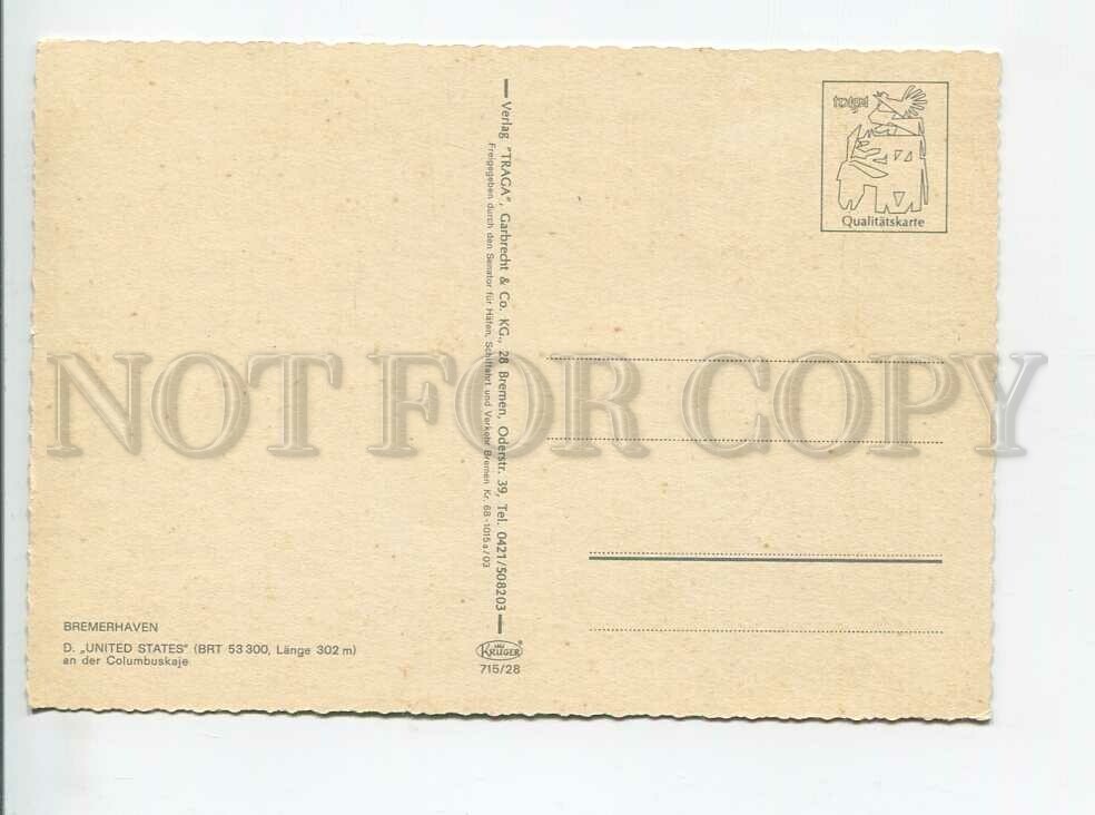 Ship Bremerhaven United States Old Postcard Description: >>> Age: Original old postcard >>> Approx.Size: 6X4 inches (15X10 cm) >>> Publisher: Traga Bremen >>> Series# - >>> NUMBER# 715/28 >>> Captio ... Read More