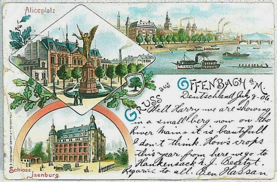Country: GermanyState: Offenbach am MainPosted: 1906, undivided backCondition: See scan.##########################Notes: Are you looking for any other postcards ? Contact us: we have a HUGE stock: tell us what are looking for, if we have it we can put it on sale !___________________________________________________________ALL ITEMS SHIPPED FROM ITALYONE CHARGE ONLY! NO EXTRA COST FOR FURTHER PURCHASE, BUT WAIT TILL WE SEND YOU COMBINED INVOICE!Please note:Orders above 30 GBP - only shipped by REGISTERED MAILOrders above 350 GBP - only shipped by COURRIER. Price according to location, but usually about 25GBP within Europe up to about 45 GBP OverseasAbout UsErcole Gloria Srl is a well know Italian stamp business, founded in 1926. We are family run, reliable and try to be as helpfull as we can. We have one of the largest and most varied stock of stamps, postal history and postcards in the world! We are uploading new items on Hip daily! If you are looking for anything, any topical or country, let us know, we will make sure to let you know what else we have!Track Page Views WithAuctiva's FREE Counter