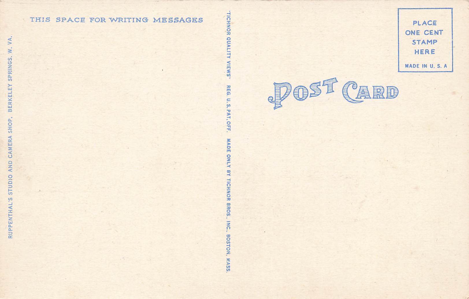 This is a nice vintage printed linen postcard showing a scene of Berkeley Springs, West Virginia. .