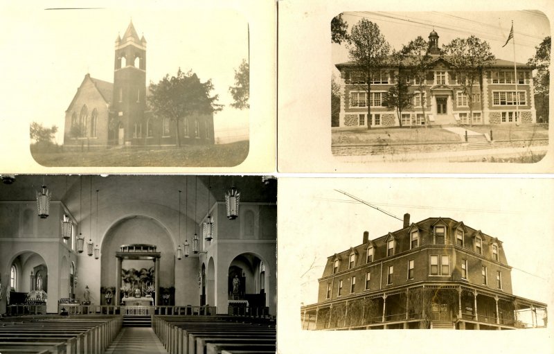 4 RPPC's - Churches, School, Hotel? Inn? *RPPC