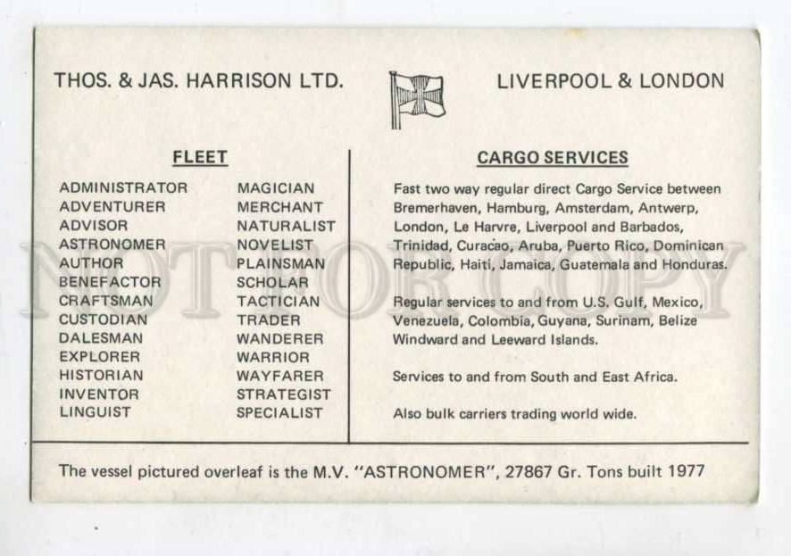 400500 Thos & Jas Harrison ADVERTISING ship Asronomer postcard