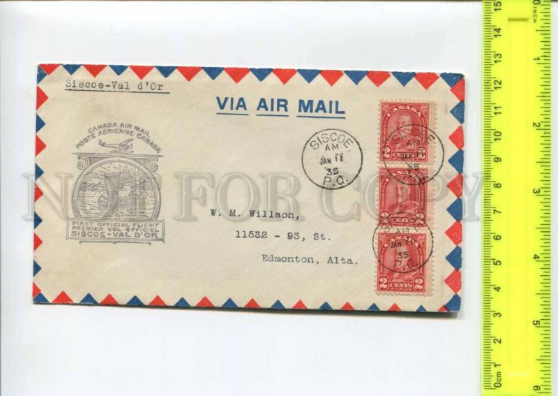 416478 CANADA 1935 year first flight Siscoe Val D'Or plane ship COVER