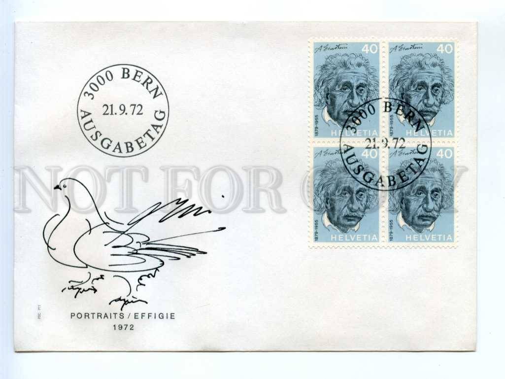 >>> CAPTION: Switzerland 1972 year First Day COVER physicist Albert Einstein block of four stamps FDC PIGEON