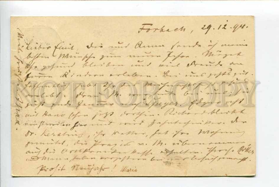 >>> Caption: GERMANY 1894 year Forbach Postal Stationery postal RPPC