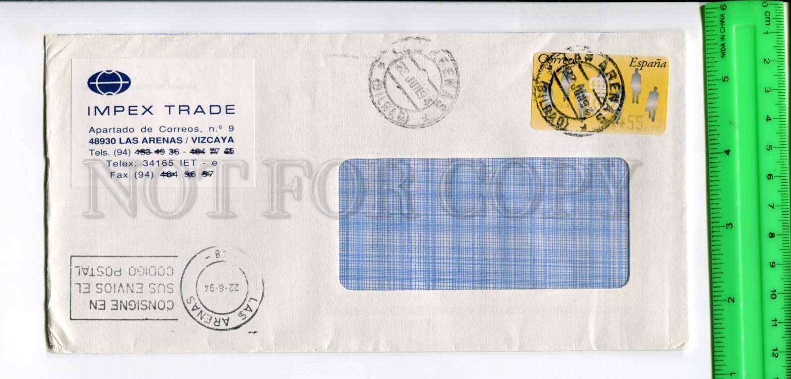 >>> CAPTION: SPAIN to GERMANY 1994 year Las Arenas ADEVERTISING real posted COVER Automatenmarken Variable value stamp