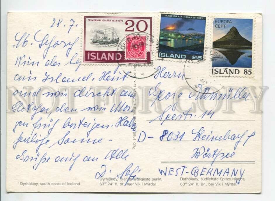 >>> Caption: Iceland 1975 year RPPC to Germany