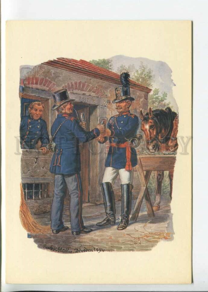 >>> Caption: Germany postal history Muller postmen drink beer Old postcard