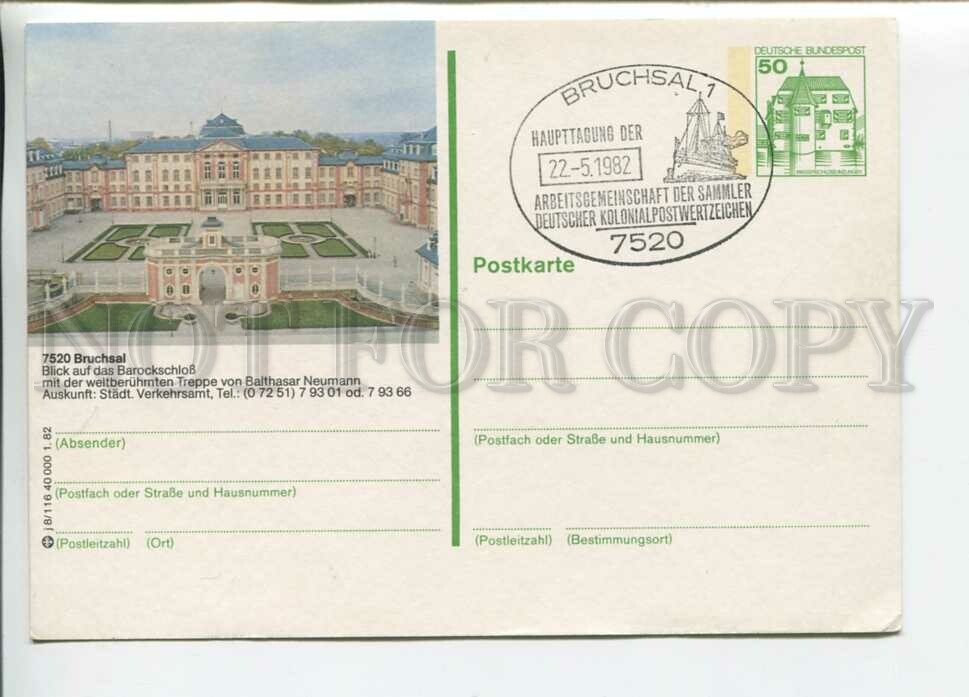 >>> CAPTION: GERMANY 1982 year Bruchsal Special cancellation POSTAL stationery postcard
