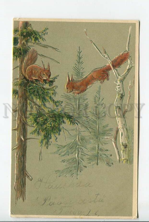 >>> Caption: SQUIRREL on Pine Tree EMBOSSED Vintage postcard 1907 year
