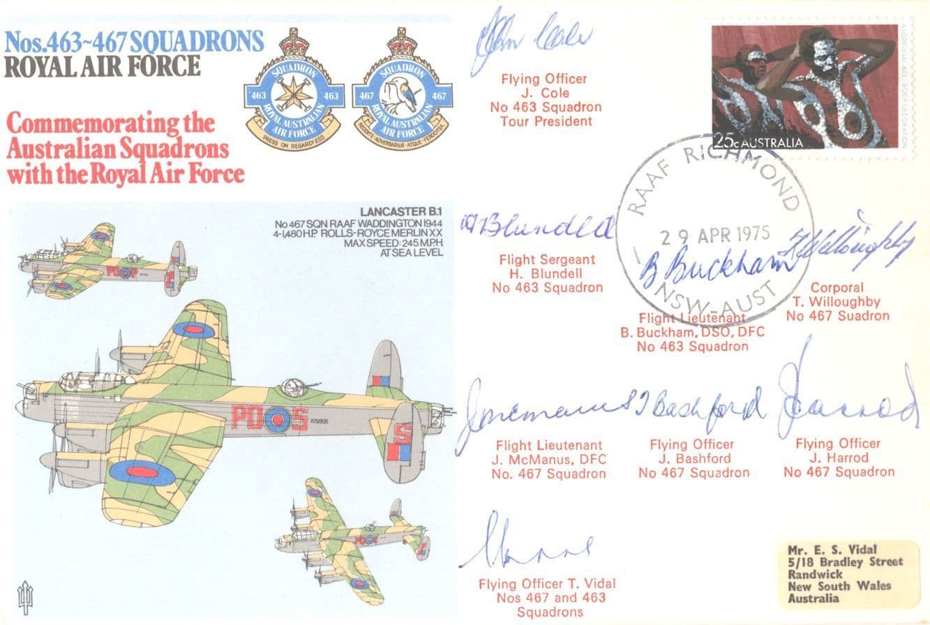 463 467 Australian Squadron RAF Lancaster WW2 7x MULTI Hand Signed FDC