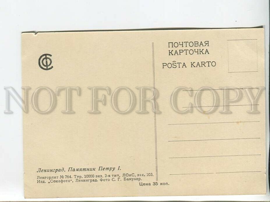 Leningrad monument to peter great bamuner circulation 10000 ed. Soyuzfoto