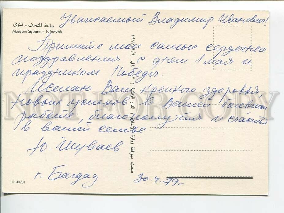 >>> Caption: Iraq Ninevah museum square Old postcard