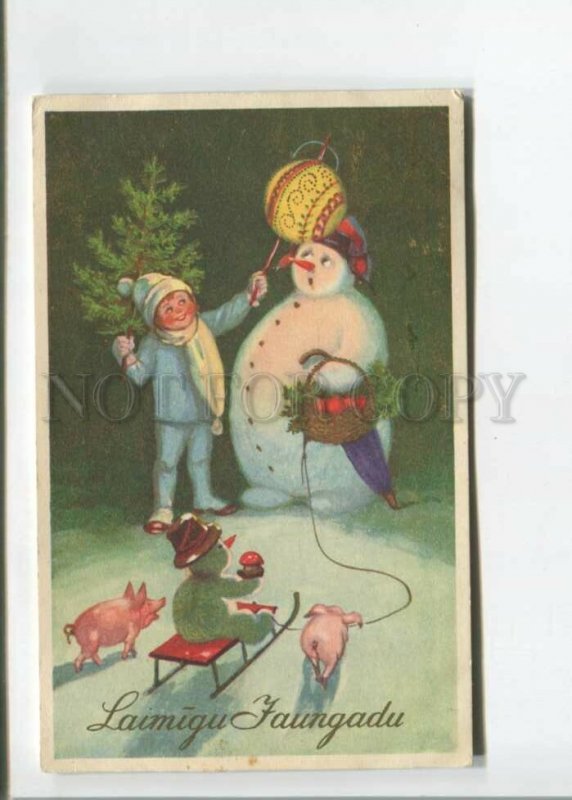 New year snowman sled pig mushroom night vintage postcard Description: >>> Age: Vintage Old original postcard >>> Approx.Size: 5.5X3.5 inches (14X9 cm) >>> Publisher: Fotobrom Riga >>> SERIES# 243 >>> ... Read More
