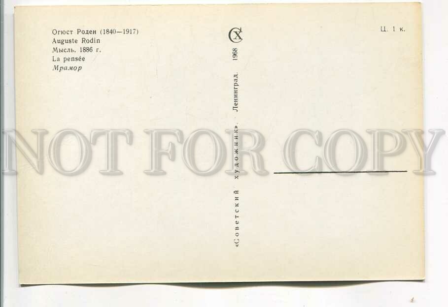 >>> Caption: USSR 1968 year Auguste Rodin thought postcard