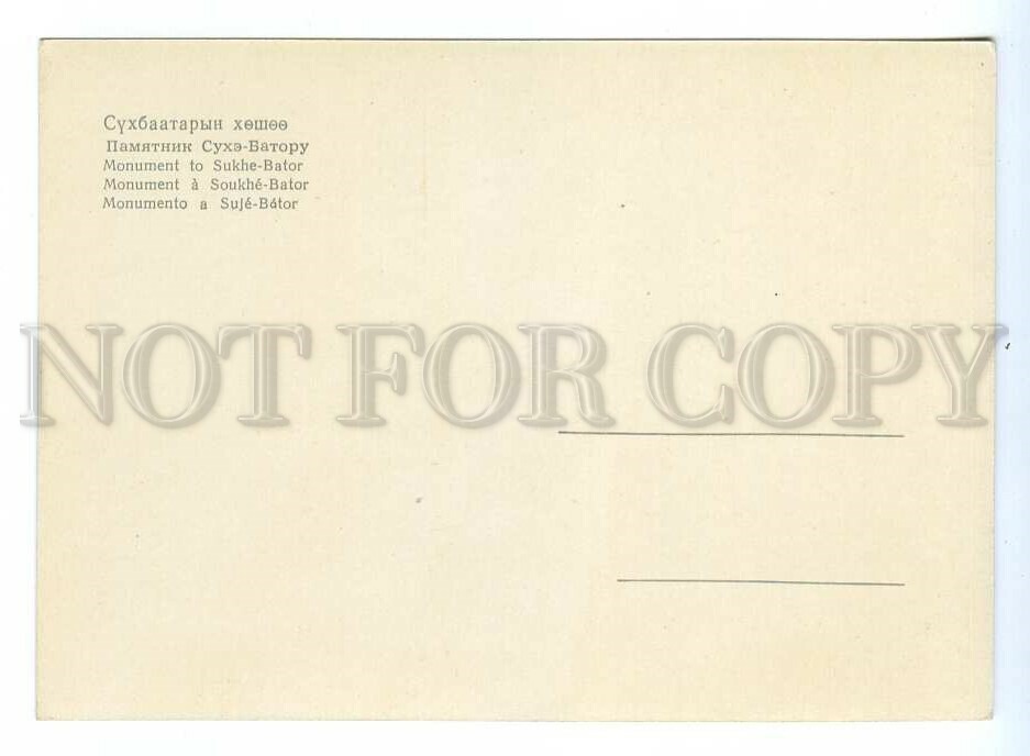 >>> Caption: Mongolia Ulan Bator monument to Sukhbaatar Old postcard