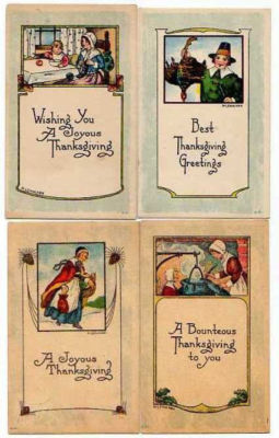 4Post Cards Pilgrims Making Thanksgiving Feast