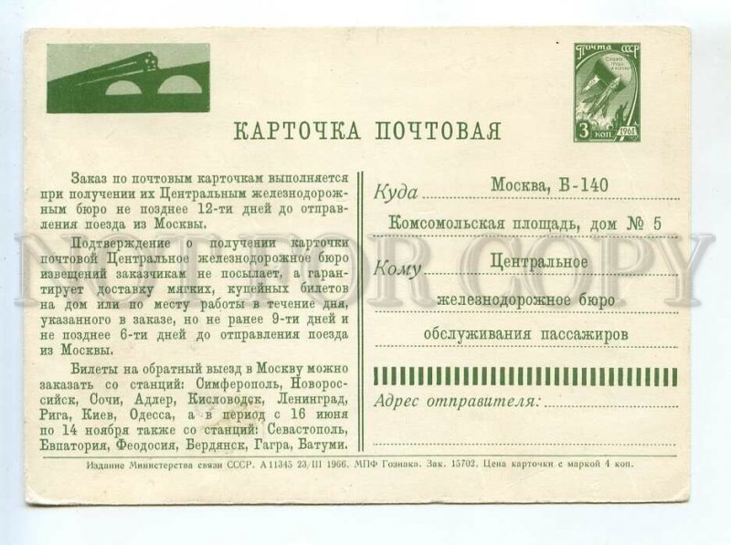 >>> caption: ussr 1966 year ordering train tickets advertising postal stationery postal postcard