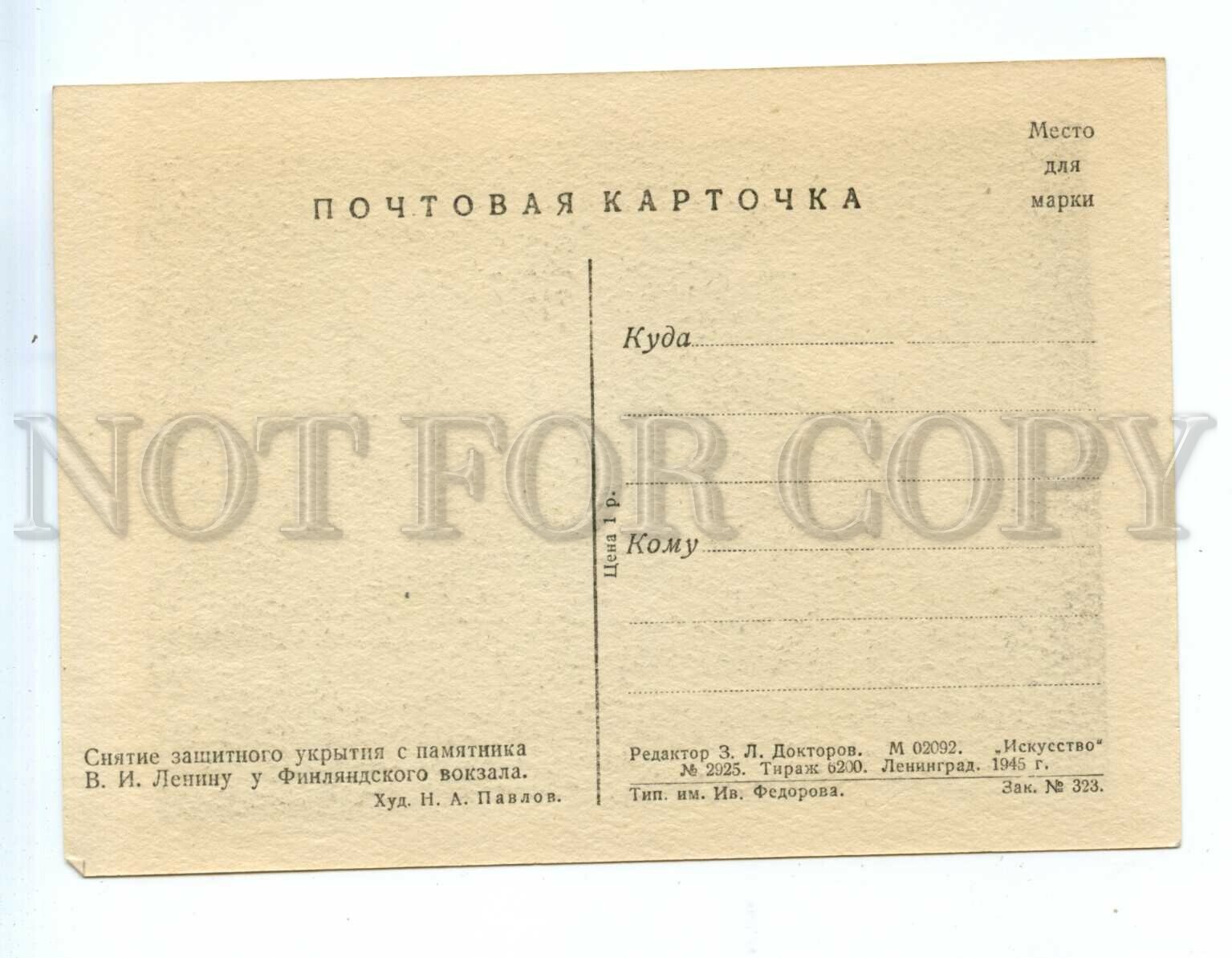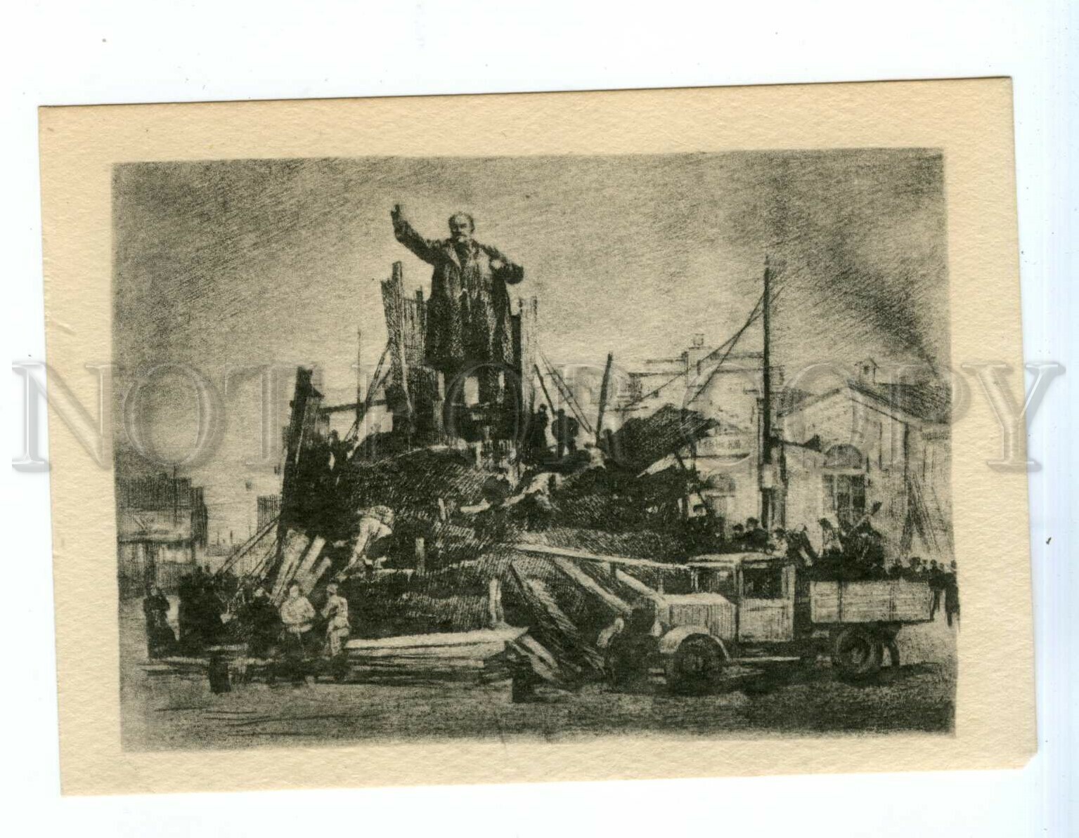 >>> CAPTION: WWII 1945 Siege Blockade LENINGRAD Removal of protective cover from Lenin monument at Finland Station by PAVLOV artist circulation 6200 postcard