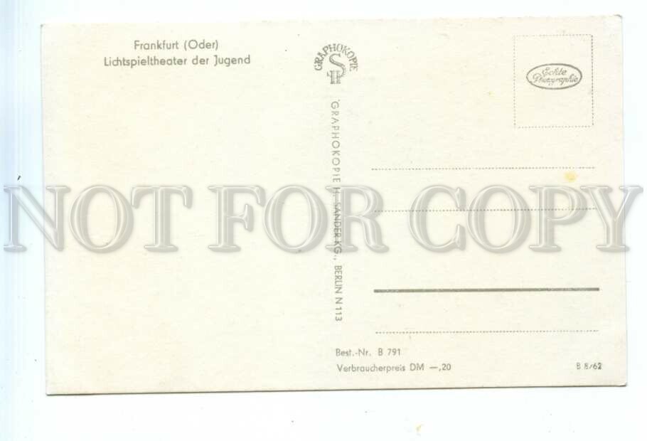 >>> Caption: Germany Frankfurt (Oder) Youth Cinema Vintage postcard