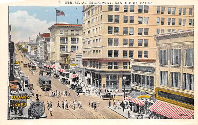5th St. at Broadway San Diego CA Postcard - Unused Grade: 2 Size: R - Regular size: Approx 3 1/2 X 5 1/2 inch (9 cm X 14 cm) Grading Scale: Grade 1 = Perfect corners Grade 2 = Very Minimal corner wear, no crea ... Read More
