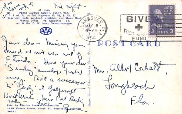 61 Units, Perry Motor Court Florida Postcard ,