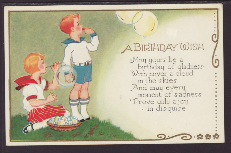 A Birthday Wish,Boy,Girl Blowing Bubbles Postcard