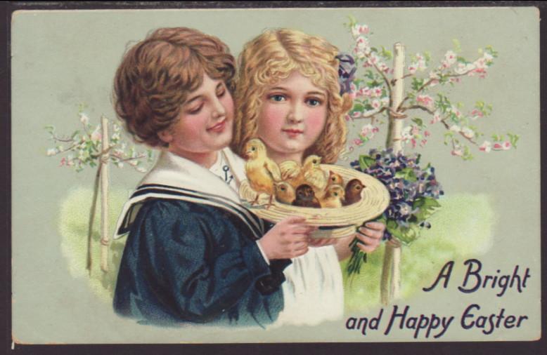 A Bright and Happy Easter,Boy,Girl,Chicks,Tuck's Postcard