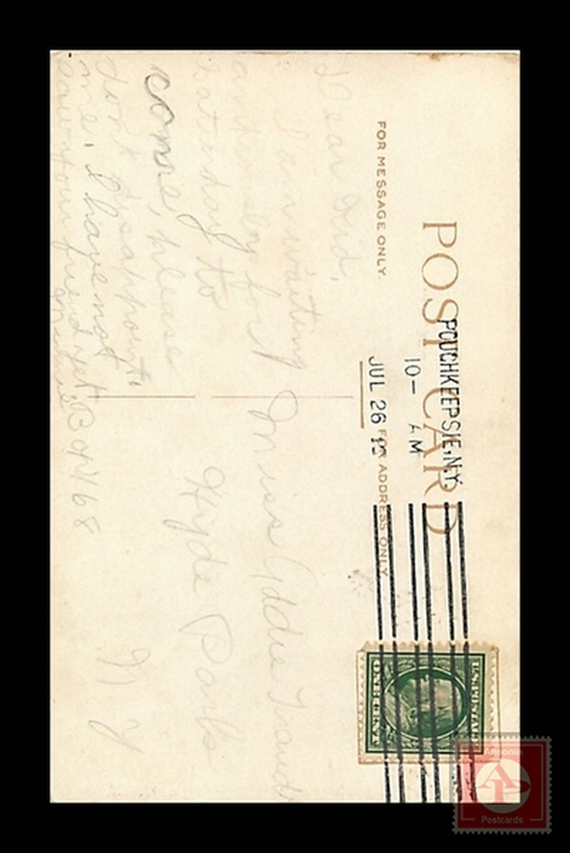 Some scans of postcards result in colored streaks which are a result of the error in scanning and not a fault of the postcard.