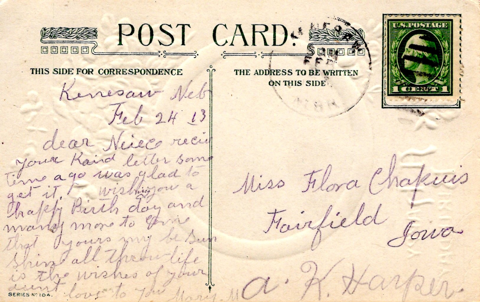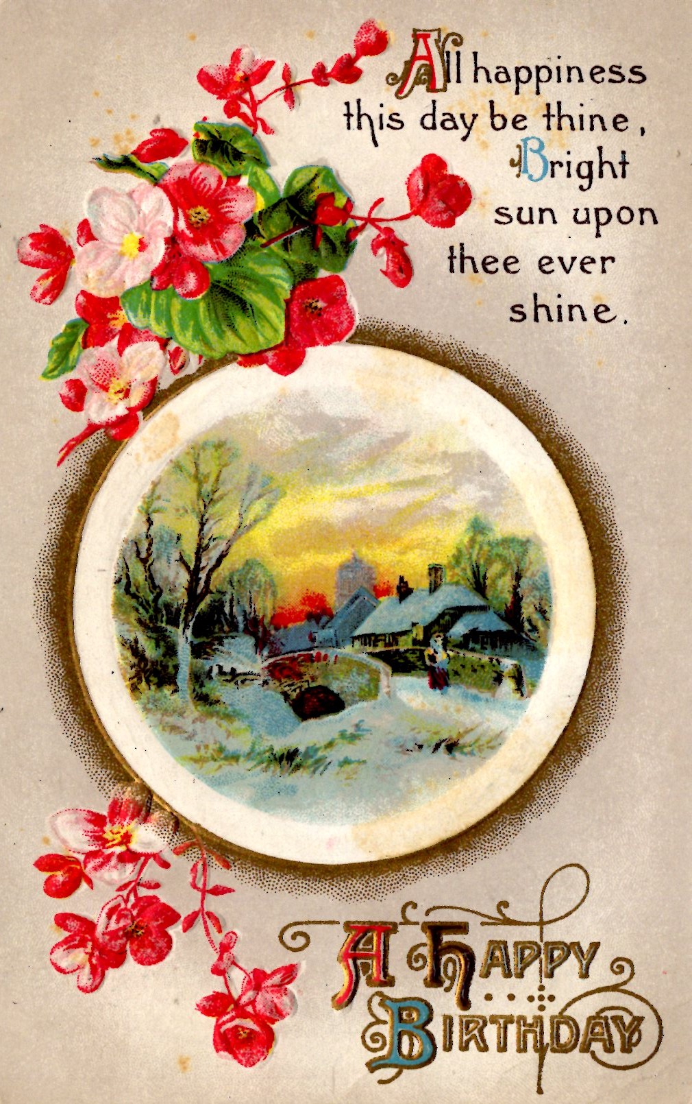A Happy Birthday - "Bright sun upon thee shine.." Embossed - 1913