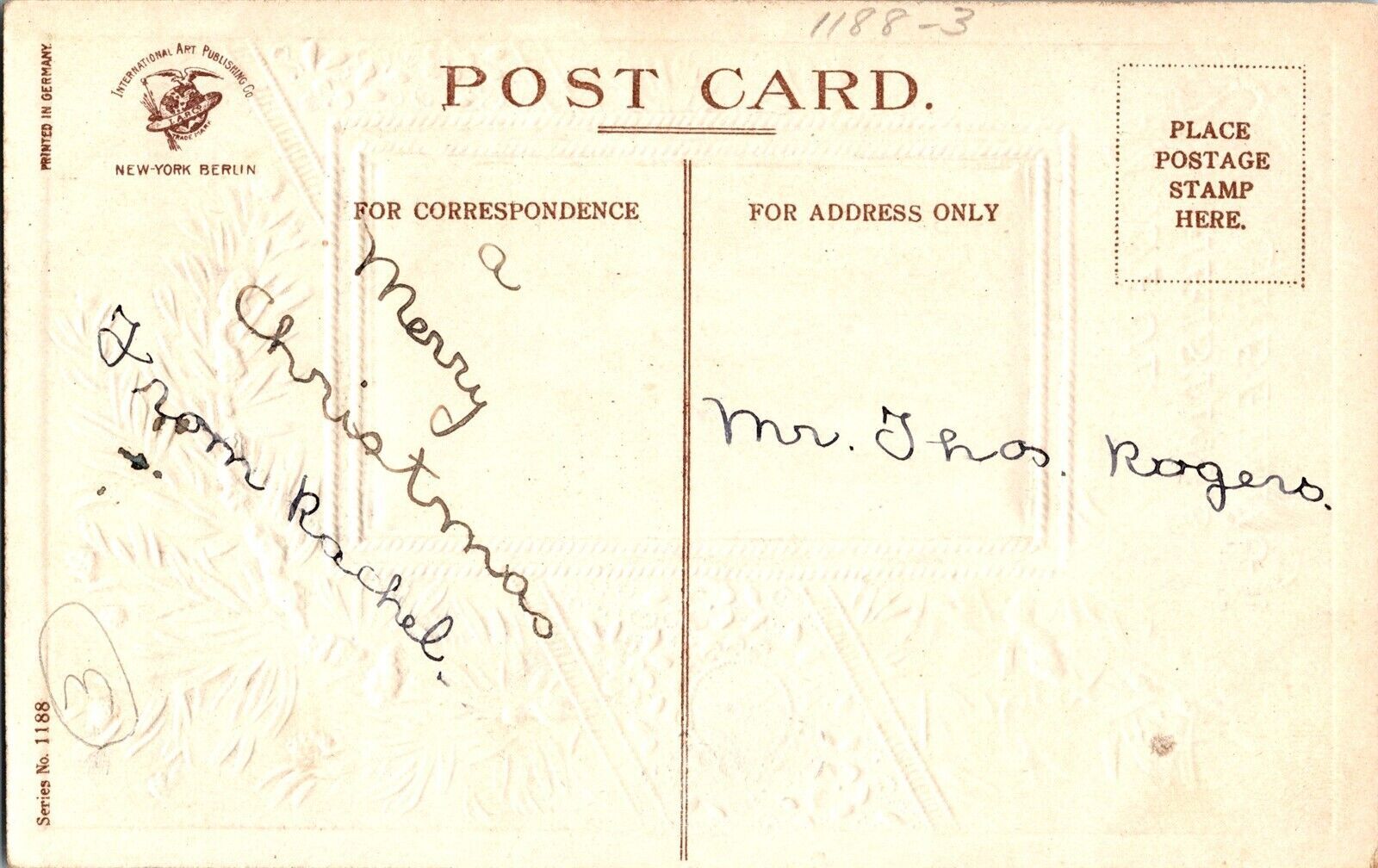 A Joyful Christmas Greetings, Snow Pine Branch Embossed Clapsaddle Postcard N56