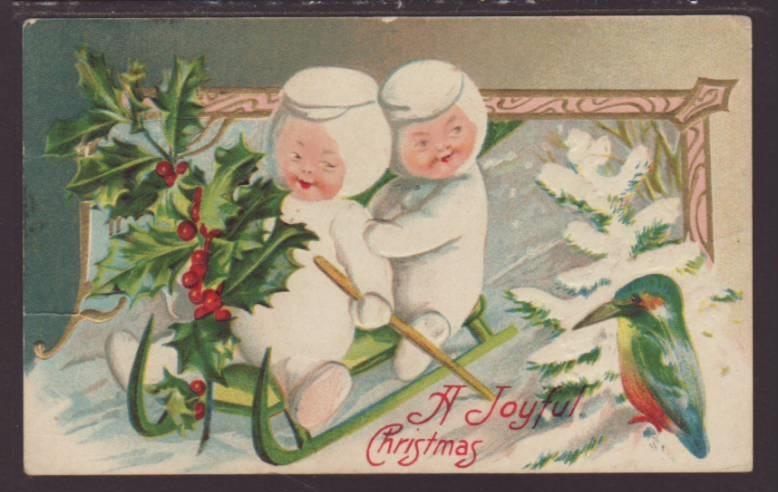 A Joyful Christmas,Children on Sled Postcard