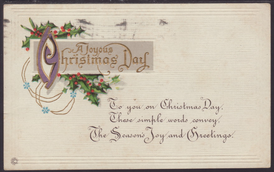 A Joyous Christmas,Holly Postcard Postally used Litho divided back EX Grading Terms MINTÂ - Perfect in every way, regardless of age. Rarely seen, may not exist. NMÂ - Near Mint, you have to look closely to see ... Read More