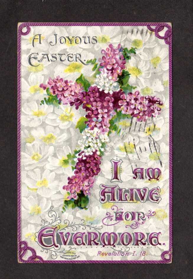 A Joyous Easter Greetings Purple & White Flower Cross Embossed Postcard US